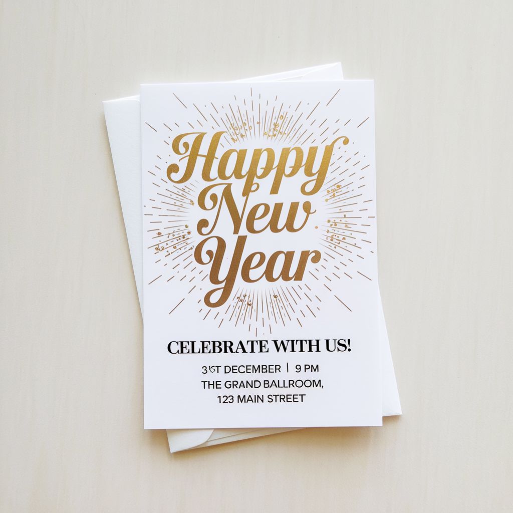 Joyful cards to ring in the new year. Customizable with personal messages and festive designs. Ideal for sending wishes to loved ones.